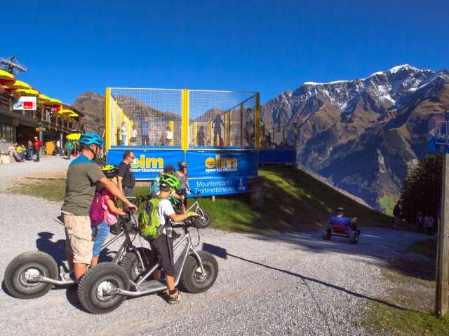 Mountaincart heisst das Funsportgerät, dass man bei den Sportbahnen Elm mieten kann. Eine Mischung zwischen Gokart und Rodeln. Gefahren wird auf der 4km langen Trottinettstrecke. Die Fahrt startet bei der Bergstation Ämpächli und endet bei der Talstation der Sportbahnen Elm.